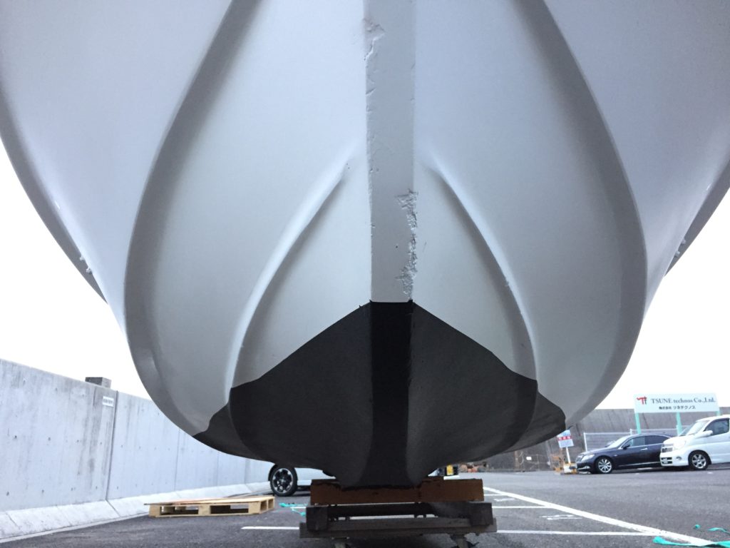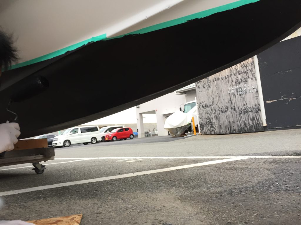 海上係留なので船底に船底塗料を塗ります。