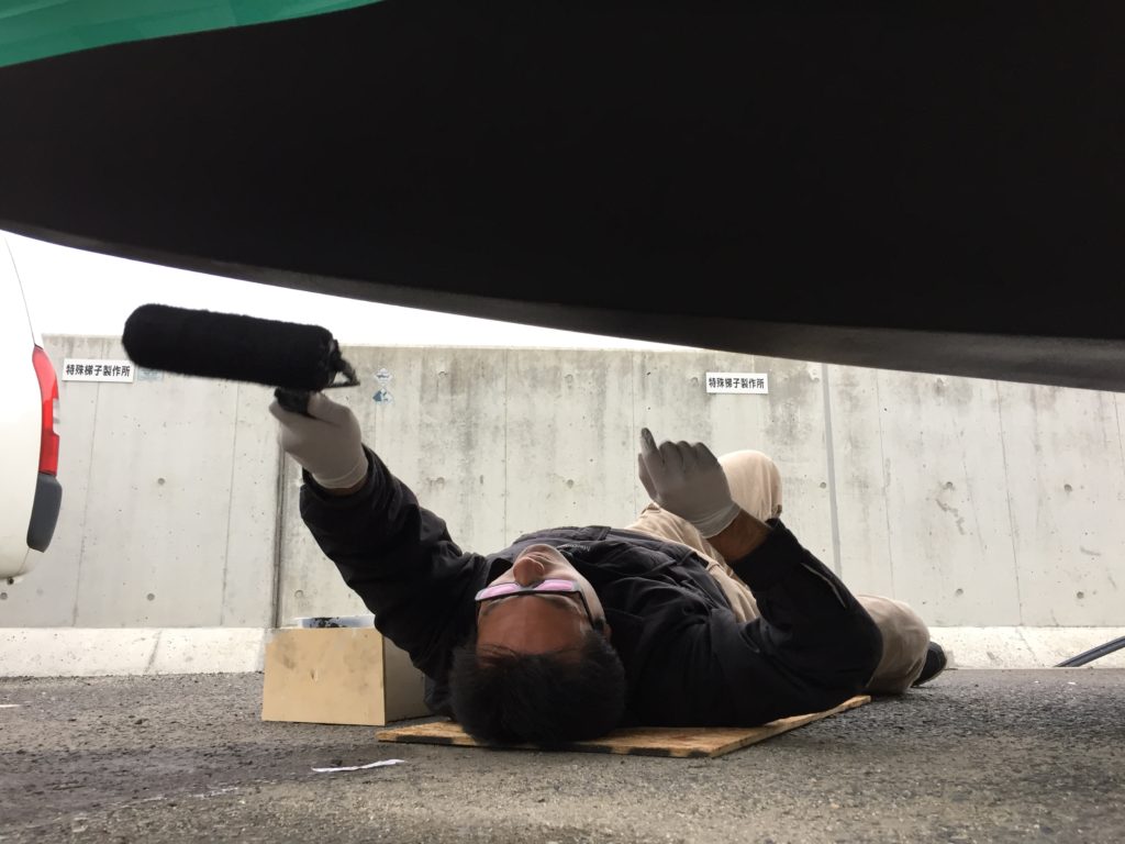 底はこんな感じで寝ながら作業です。