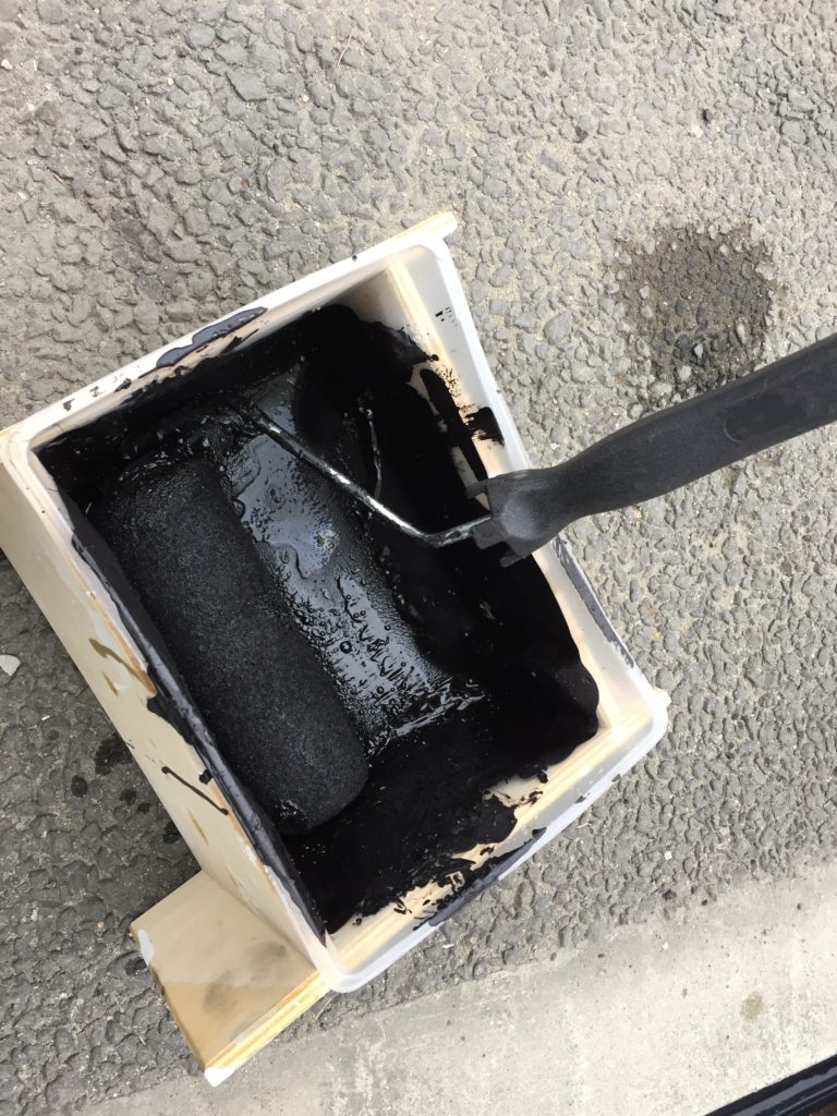 今回はホームセンターで売っているペンキ用のローラーと使い捨ての容器を使います。